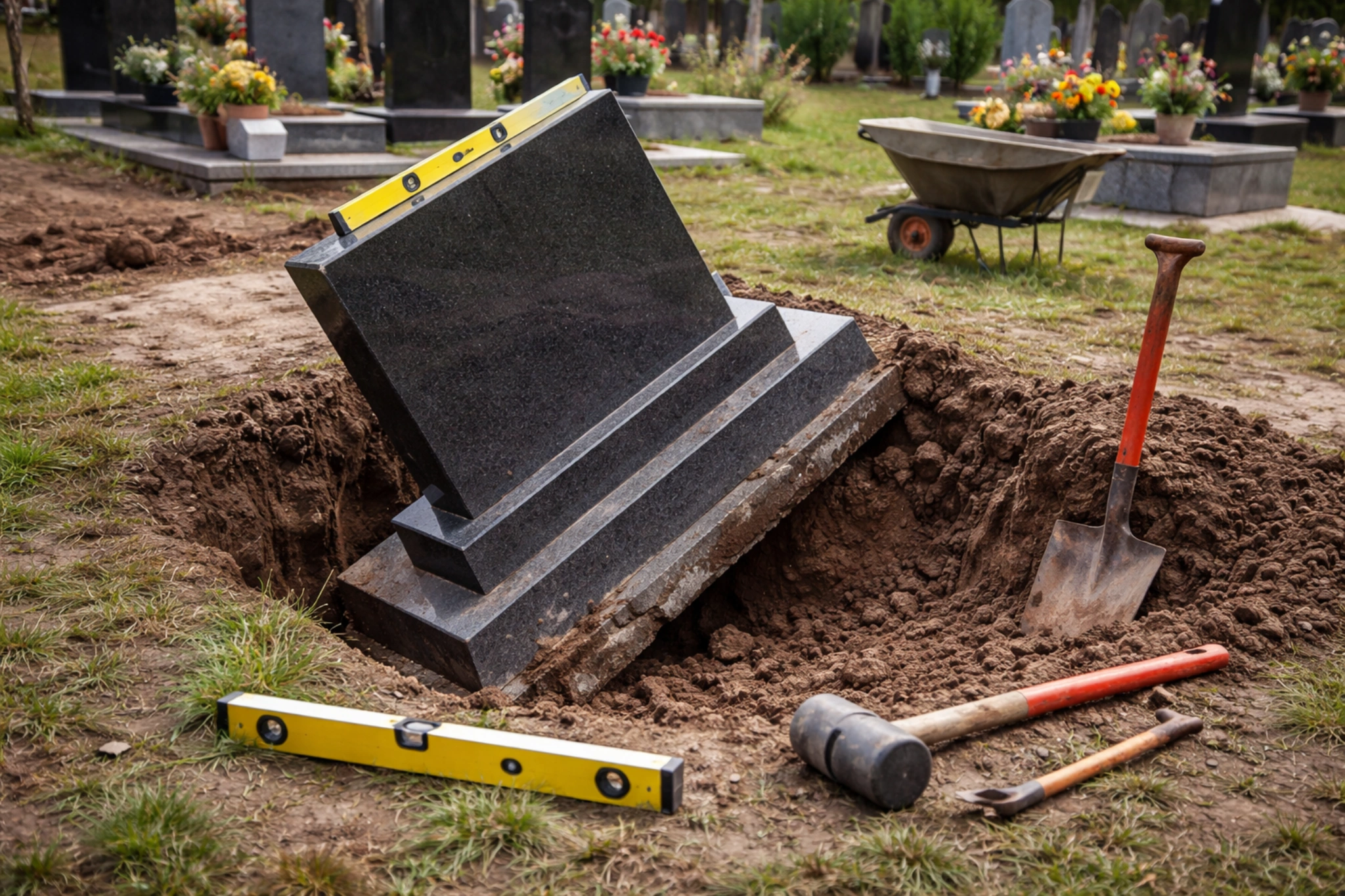 • Дайте ґрунту стабілізуватися: у середньому через 12 місяців після поховання земля осідає приблизно на 80%, і саме тоді ризики перекосу нижчі.