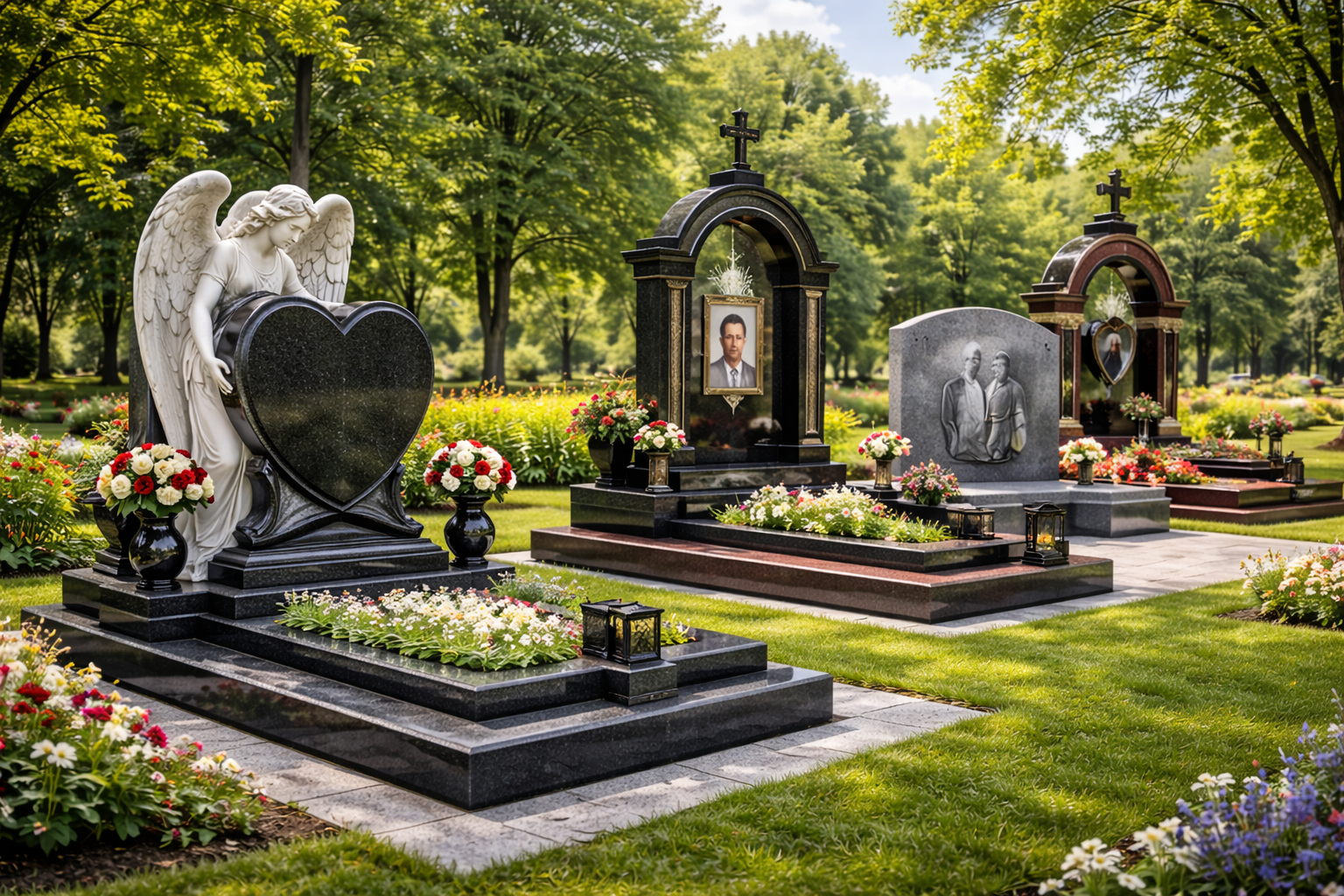Після вибору часу важливо підібрати формат виробу під реальні умови ділянки. Для акуратного мінімалістичного рішення часто обирають поодинокі пам’ятники або подвійні пам’ятники. А якщо хочеться одразу завершений вигляд ділянки — допомагають меморіальні комплекси.